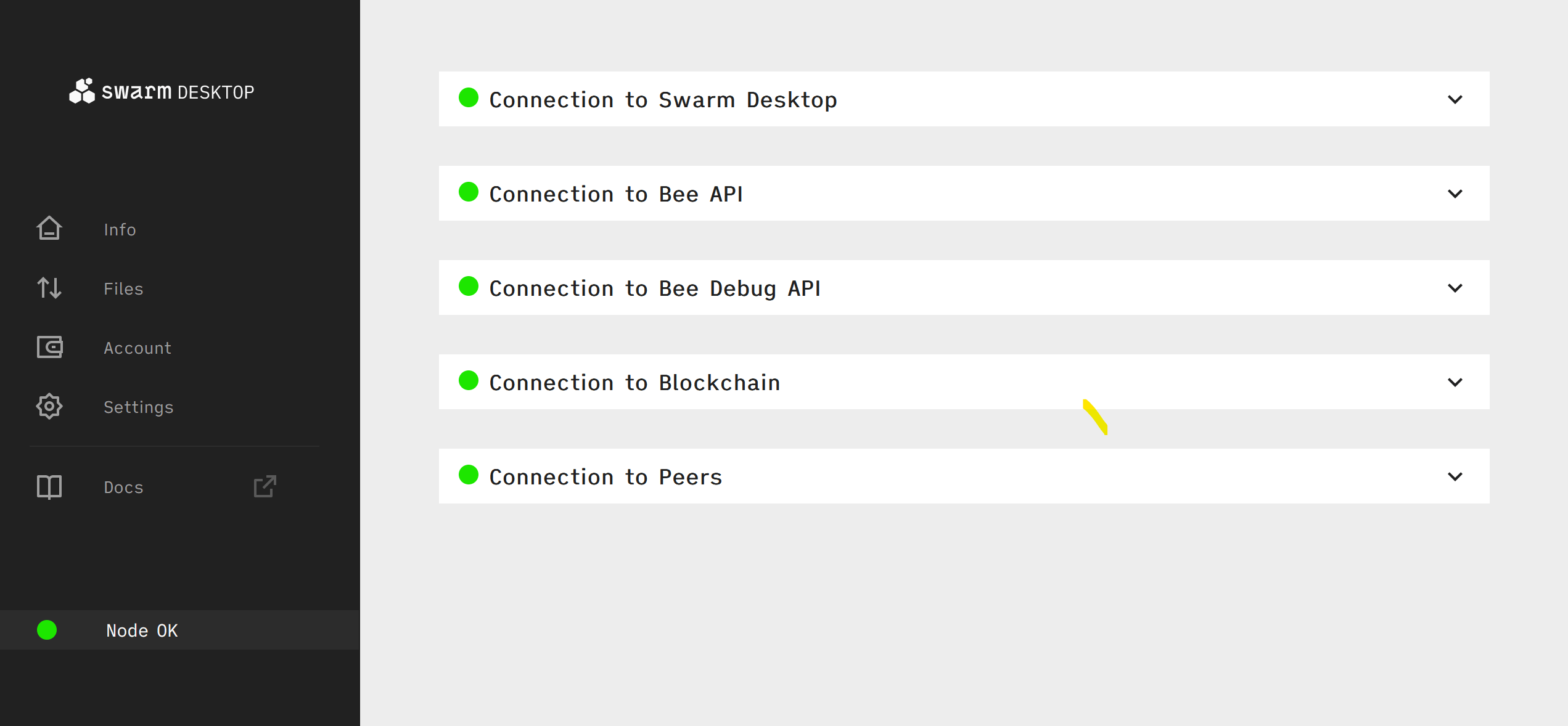To create a backup of your Bee node in Swarm Desktop, start by shutting down your node.