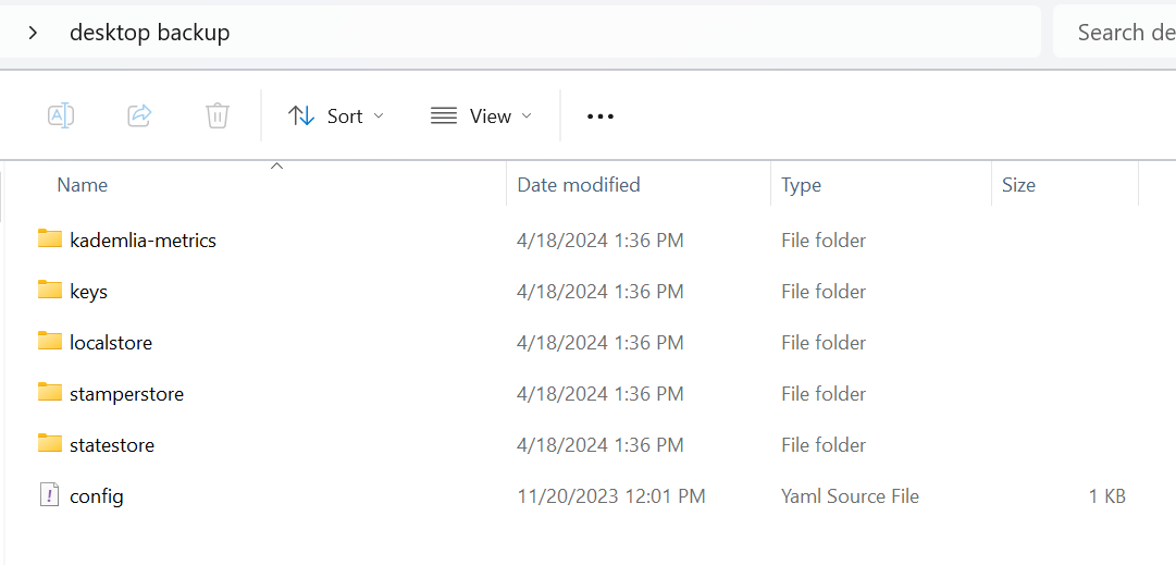 Navigate to the directory you just copied and create copies of all the files in that directory (\data-dir), including localstore, statestore, stamperstore, kademlia-metrics and keys folders and store them in a secure and private location.